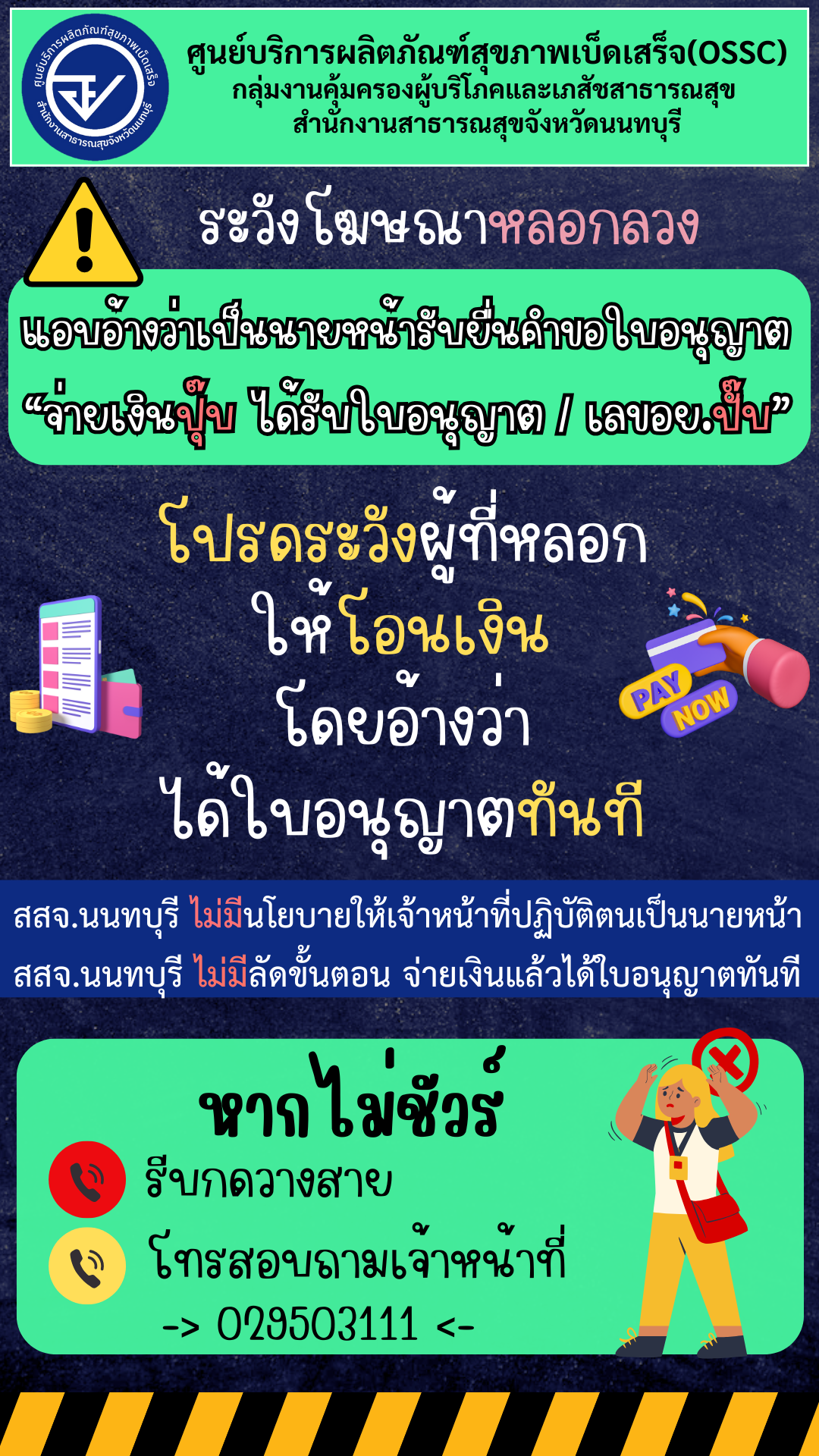 ❌OSSC สสจ.นนทบุรี ไม่มีลัดขั้นตอน จ่ายเงินแล้วได้ใบอนุญาตทันที